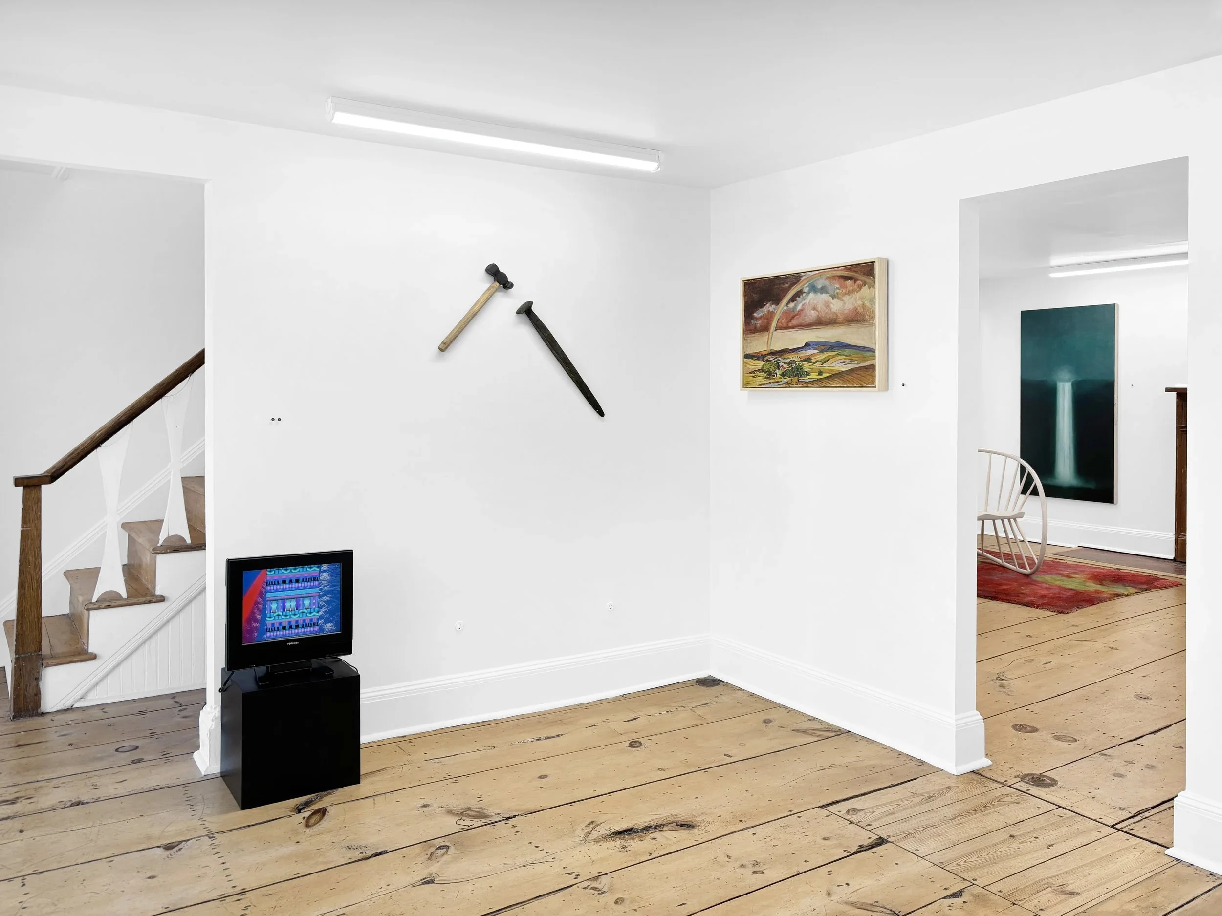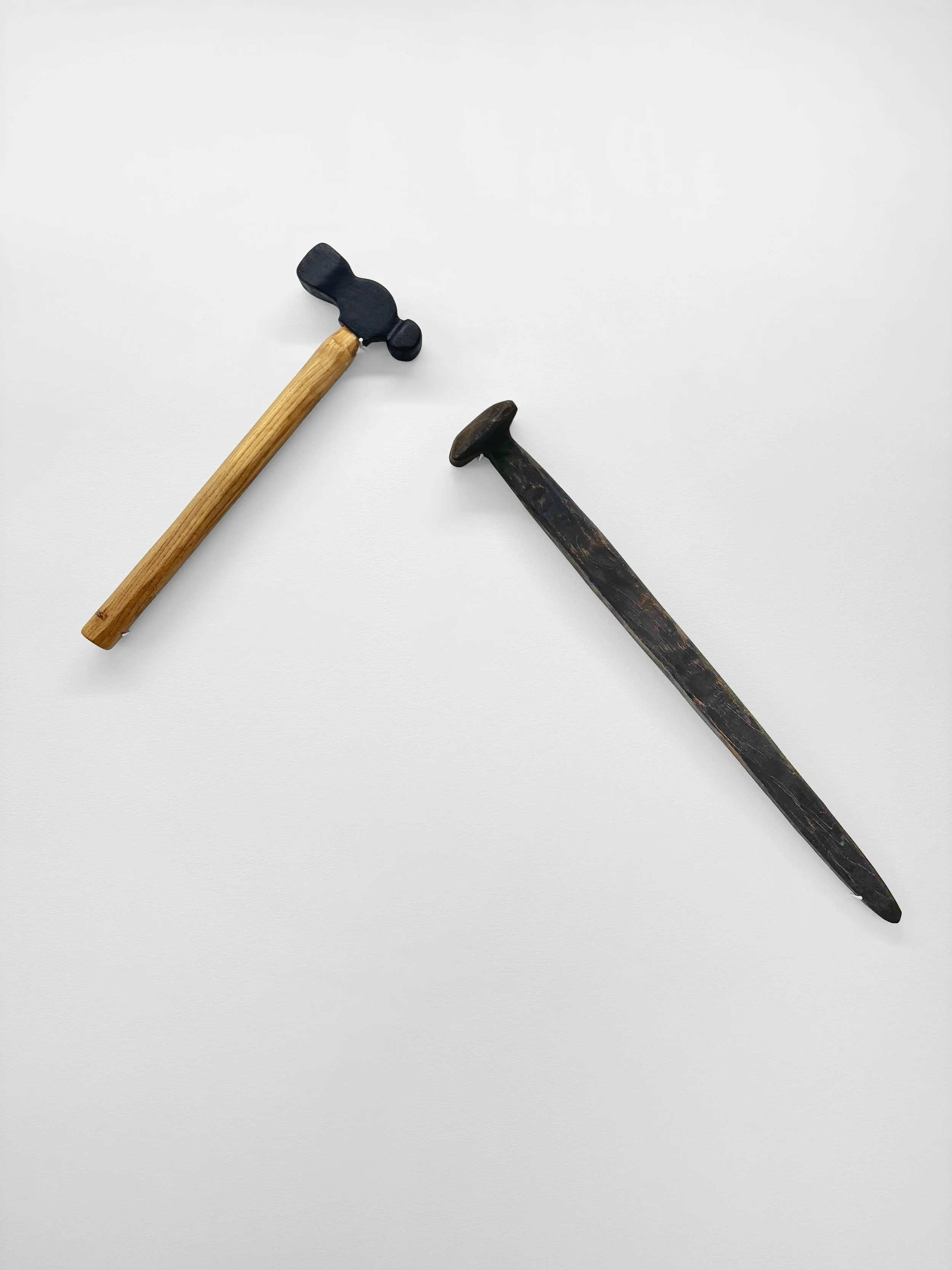 Hammer, 2025, Oak with house paint and wood stain, 16x4.75x1.75 inches $450