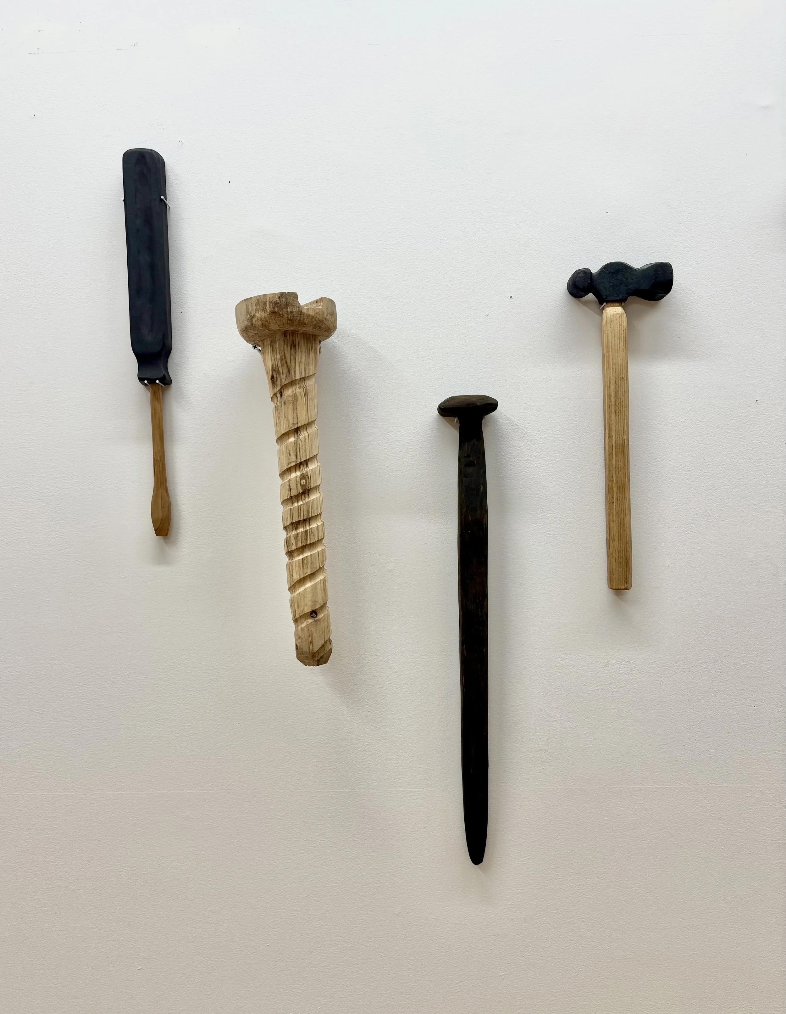 Hammer, 2025, Oak with house paint and wood stain, 16x4.75x1.75 inches